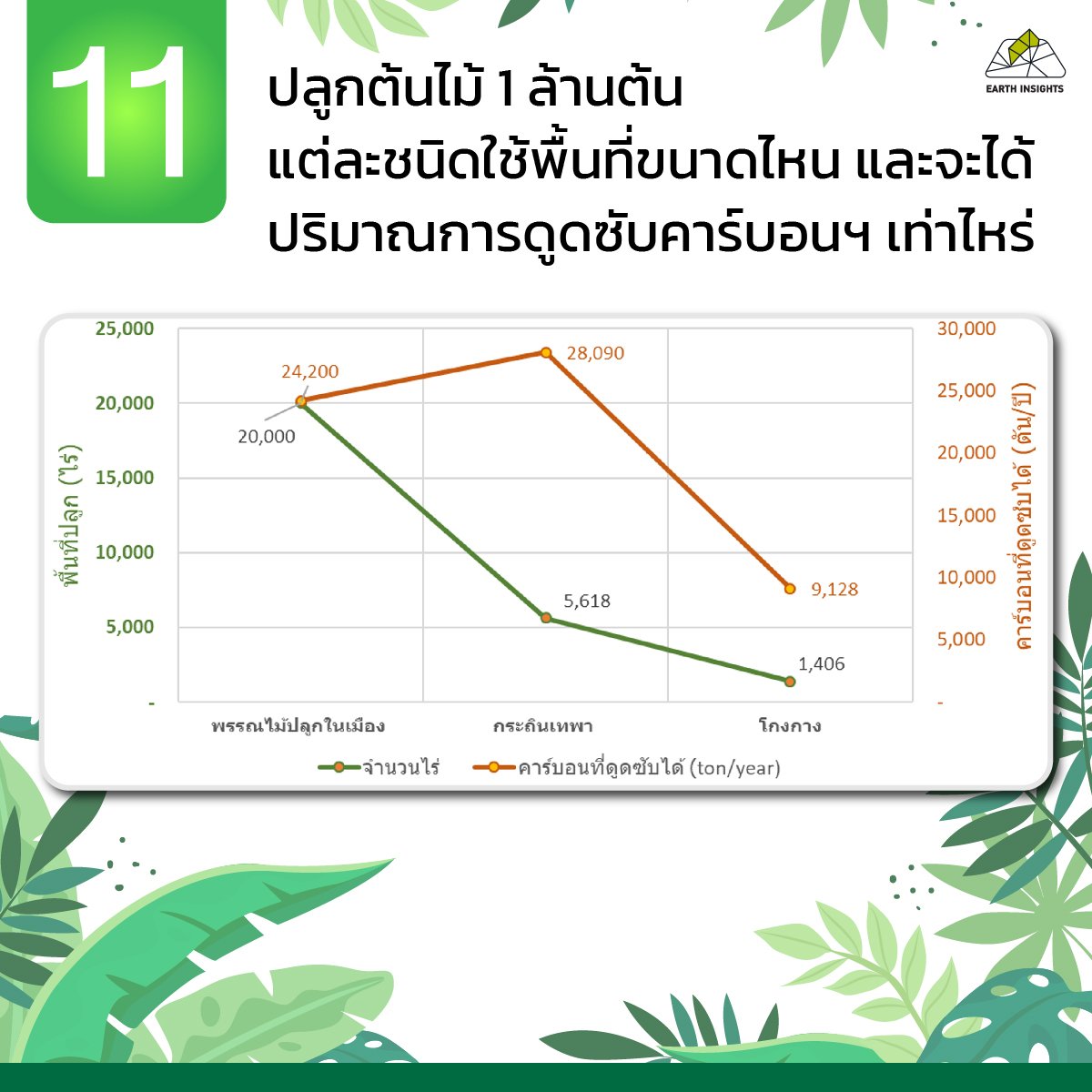 ทีนี้มาดูกันว่า การรณรงค์ปลูกต้นไม้ ตามนโยบายของท่านผู้ว่ากรุงเทพฯ อ.ชัชชาติ สิทธิพันธุ์ปลูกต้นไม้ 1 ล้านต้น เราจะเลือกปลูกต้นไม้ชนิดไหนดี ใช้พื้นที่เท่าไหร่ และจะได้ปริมาณการดูดซับคาร์บอนเท่าไหร่บ้าง ??