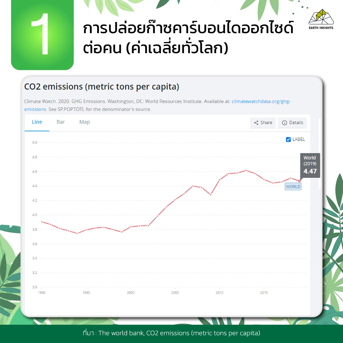 ค่าเฉลี่ยของทั่วโลก ปล่อยคาร์บอนฯ อยู่ที่ 4.47 ตันคาร์บอนฯ ต่อคน ต่อปี