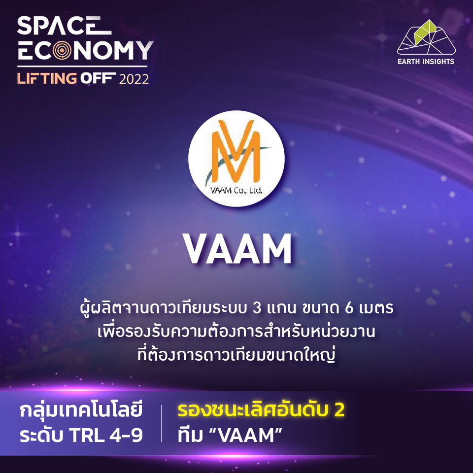 -รางวัลรองชนะเลิศอันดับ 2 ได้แก่ VAAM ผู้ผลิตจานดาวเทียมระบบ 3 แกน ขนาด 6 เมตร เพื่อรองรับความต้องการสำหรับหน่วยงานที่ต้องการดาวเทียมขนาดใหญ่