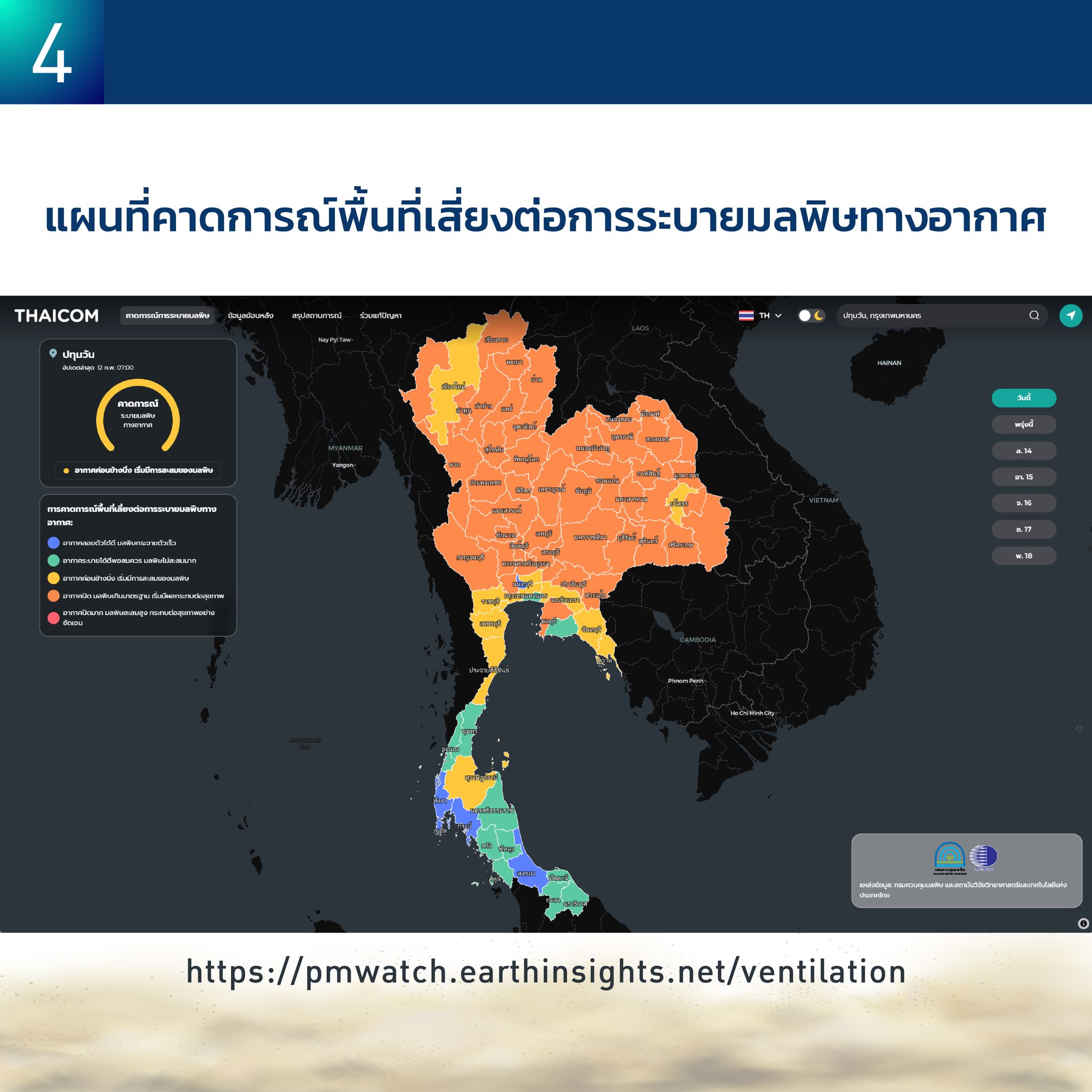 โครงการนี้ดำเนินงานร่วมกับ กรมควบคุมมลพิษ และ สถาบันวิจัยวิทยาศาสตร์และเทคโนโลยีแห่งประเทศไทย (วว.) (ดังภาพที่ 4) โดยสามารถเข้าใช้งานระบบได้ที่: