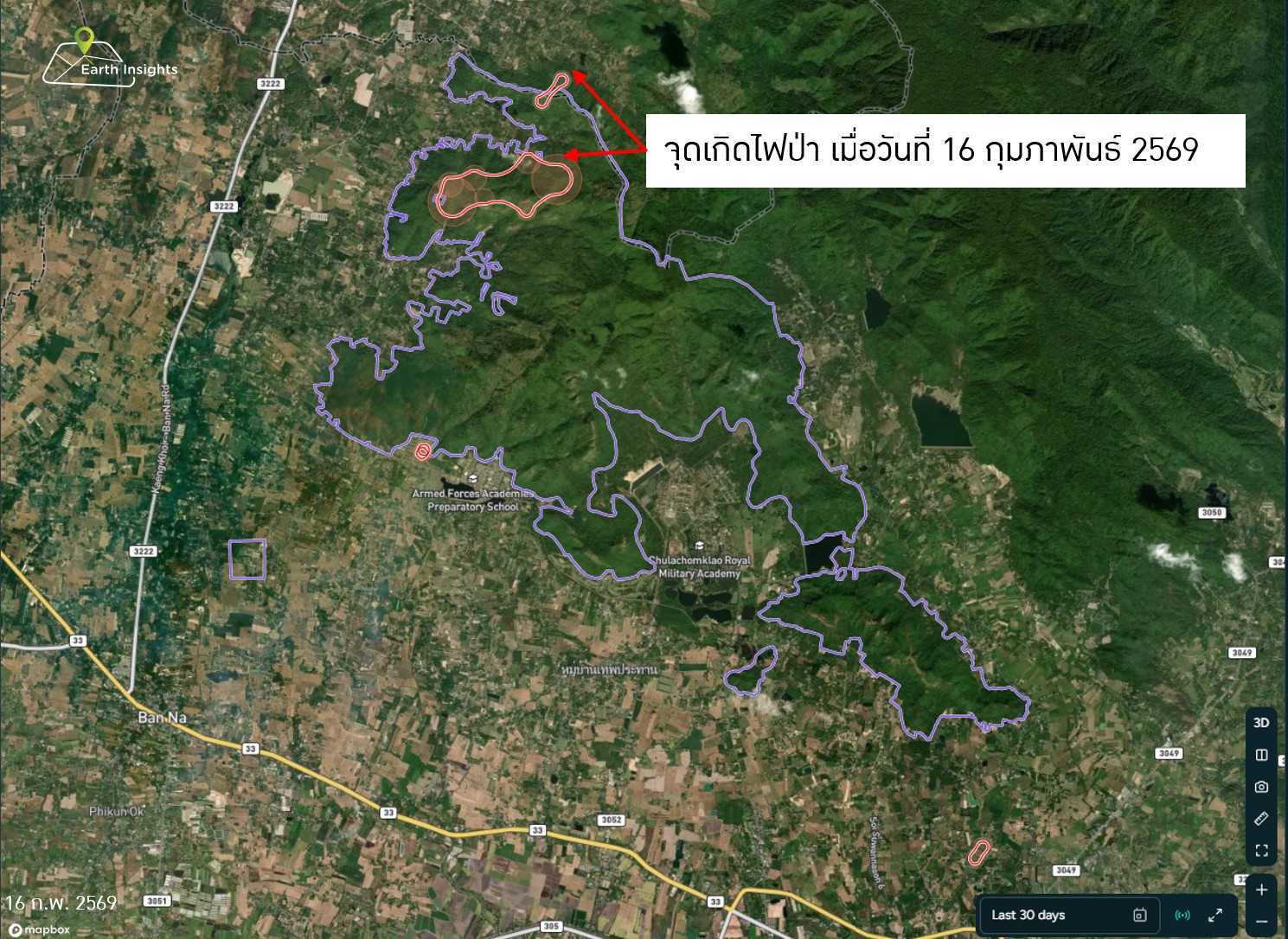 cr]เมื่อวันที่ 24 กุมภาพันธ์ 2569 บริษัท ไทยคม จำกัด (มหาชน) นำทีมพนักงานจิตอาสา Thaicom Volunteer ลงพื้นที่สนับสนุนภารกิจป้องกันไฟป่าและส่งมอบการใช้งานแพลตฟอร์ม FlameWatch และ PMWatch ให้แก่เจ้าหน้าที่สถานีควบคุมไฟป่าเขาใหญ่ฝั่งใต้ อำเภอบ้านนา จังหวัดนครนายก เพื่อเสริมประสิทธิภาพการป้องกันและรับมือสถานการณ์ไฟป่าในพื้นที่สำคัญ