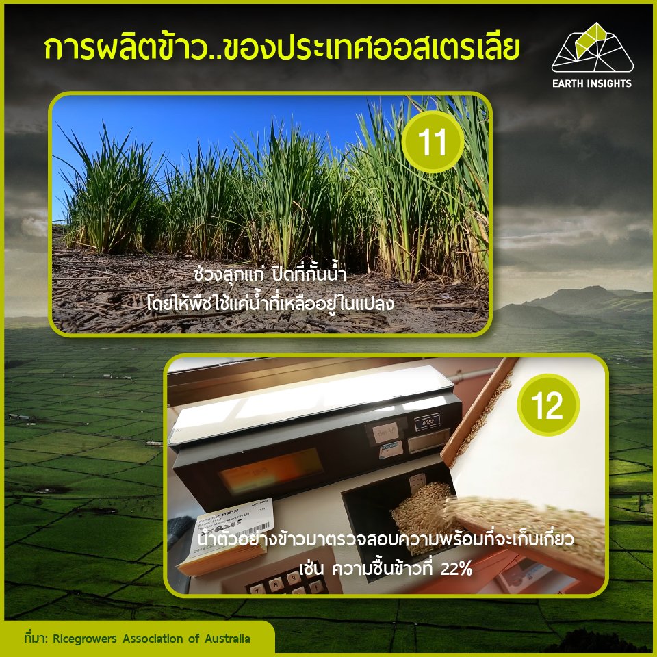 ประการแรกเลย นักวิทยาศาสตร์จะทำการวิจัยปรับปรุงพันธุ์ข้าว ให้ใช้น้ำน้อย และให้ได้ผลผลิตคุณภาพสูง ต่อมาทางการจะถ่ายทอดความรู้สู่เกษตรกร เพื่อให้ทำการเพาะปลูกด้วยวิธีที่ถูกต้อง ในช่วงเวลาที่กำหนด เพราะจะมีการจัดสรรน้ำตามพื้นที่ที่กำหนดเท่านั้น (ดูจากภาพได้นะครับ)