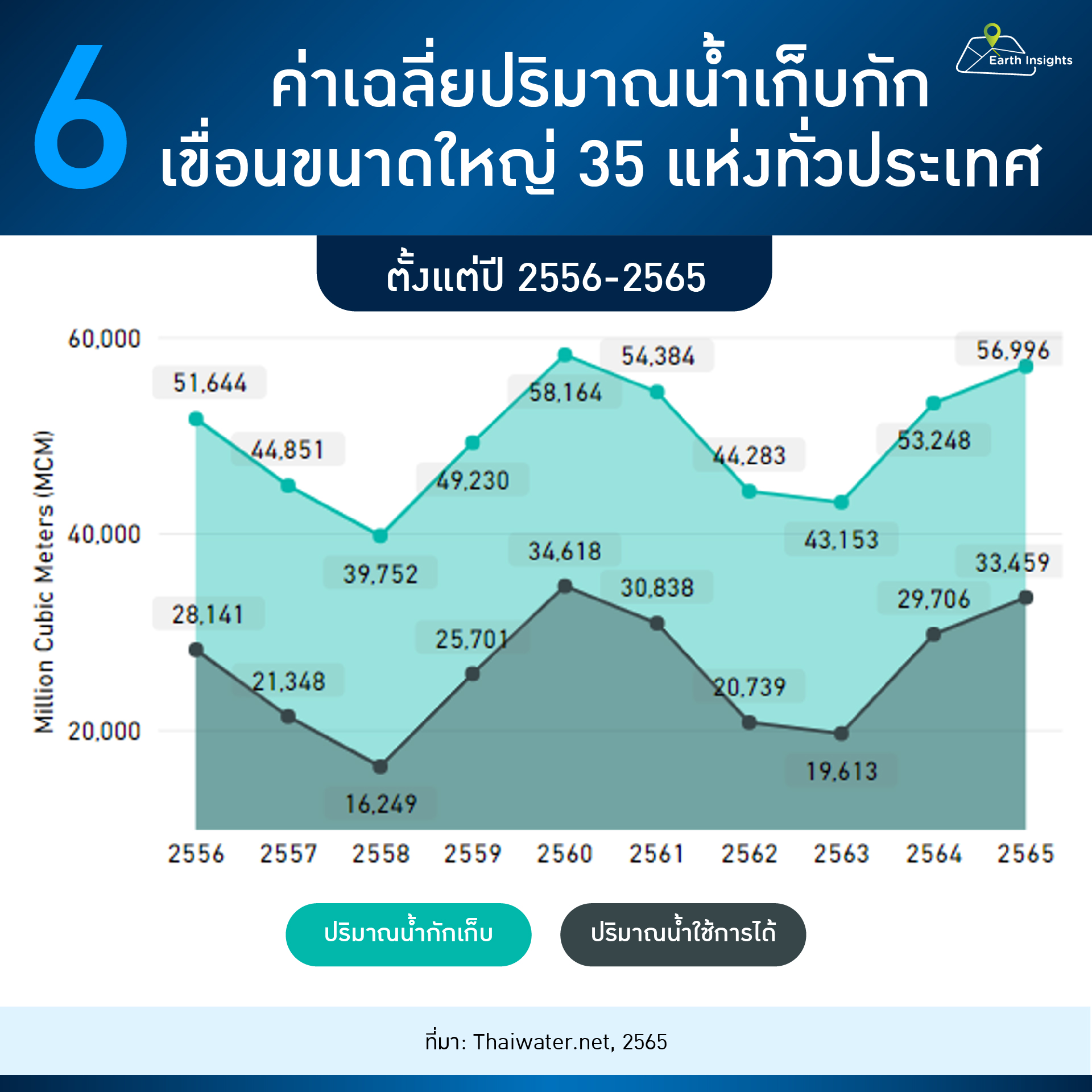 [7] รายงานสถานการณ์น้ำประเทศไทย ปี 2565 : เขื่อนขนาดใหญ่ 35 แห่งทั่วประเทศ, Thaiwater.net, 2565